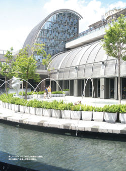 街上的繽紛公共藝術、連結各種商業設施、全長約2.3公里的空橋等,將「設計」納入的區域發展規劃引人注目。另外,CHANEL、GUCCI、COACH等高級名牌店也集中在此區。