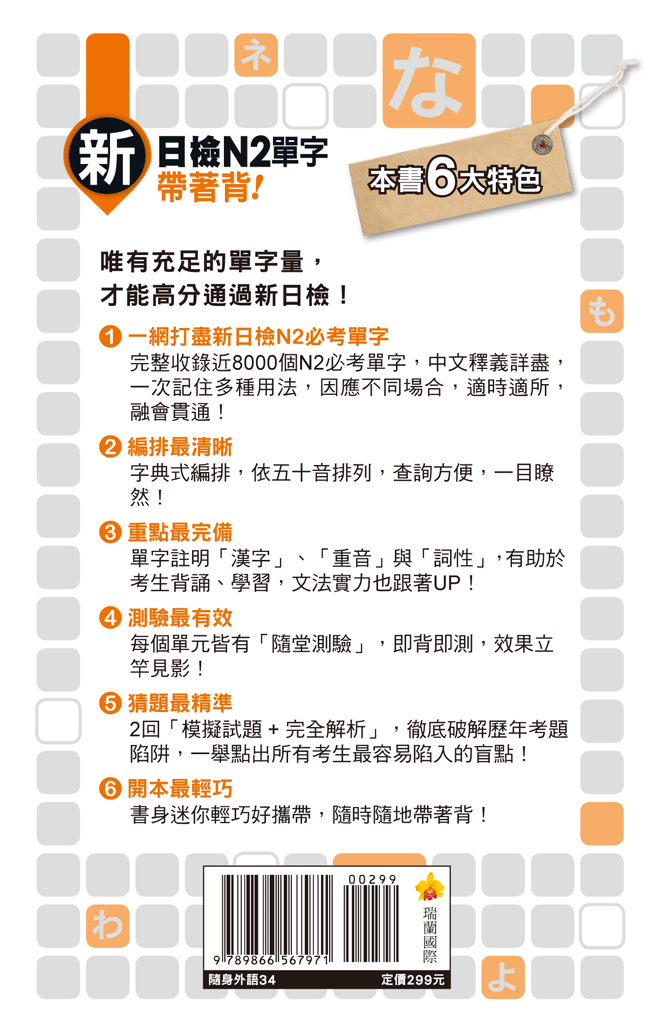因應隨時隨地皆能背誦、準備N2單字的需求,特別製作成好攜帶的小開本。讓您不管是在捷運