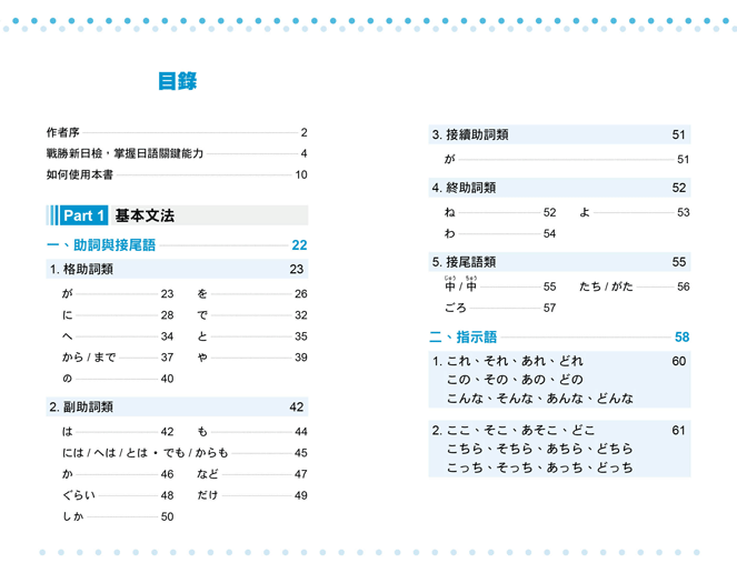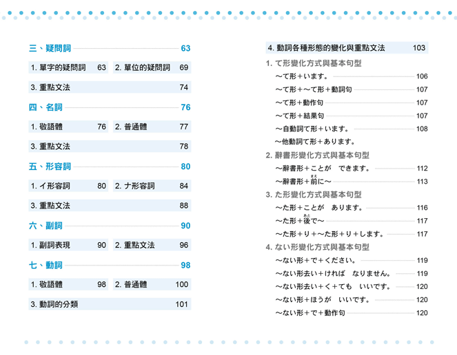 為了可以從容面對這樣的轉變,本書不僅是縱向的整理,列舉出所有詞性的基本文法,