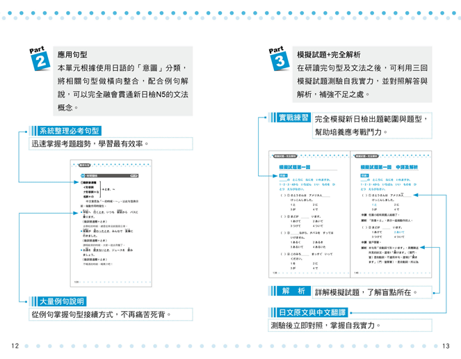 例句豐富實用,幫助了解文法、句型的結構與變化。