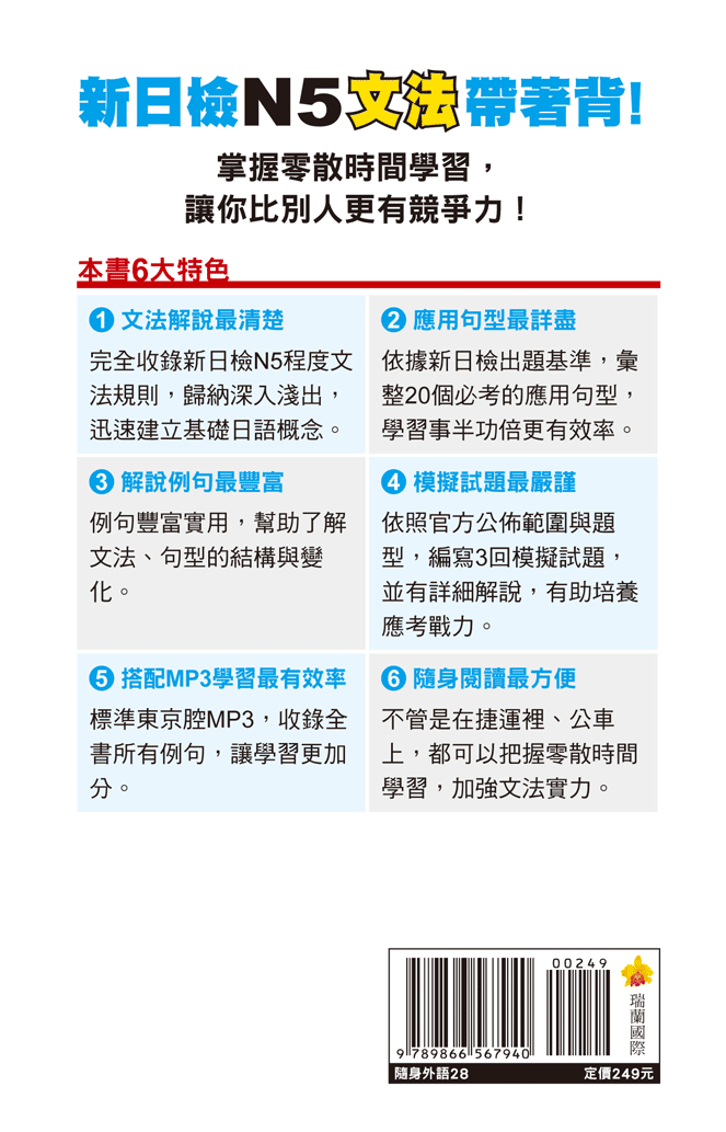 只要隨身攜帶《新日檢N5文法帶著背!》,便能迅速搞定所有必考文法!