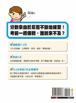 倘若你覺得準備還不夠充分,請不要輕言放棄,掌握考前7天努力衝刺,把每回練習與解析出現的文字語彙認真熟記,用最有效率的方式,讓學習一次就到位,照樣交出漂亮的成績。