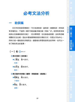 本單元挑選出N5常考的助詞、詞類變化以及句型,讓您融會貫通,文法清楚不混淆!