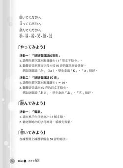 「遊んでみよう」是遊戲競賽型或表演型活動,學生在帶點緊張刺激感的活動之中,自然使用日語。因此事前讓學生先熟練該怎麼說、怎麼回應,再進行遊戲。