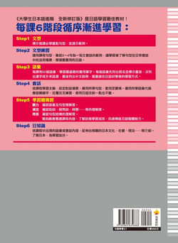 《大學生日本語進階 全新修訂版》紮實完整的內容,是獻給日語初級學習者邁向中級程度的最佳日語學習書!