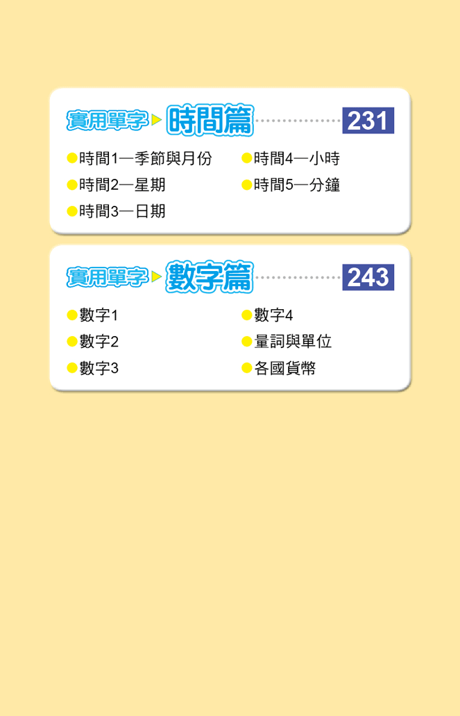2.好實用:身分、身體、生活、自然、旅遊、飲食、時間、數字,超過1300個最實用的單字和21個句型,現學現用最有效!