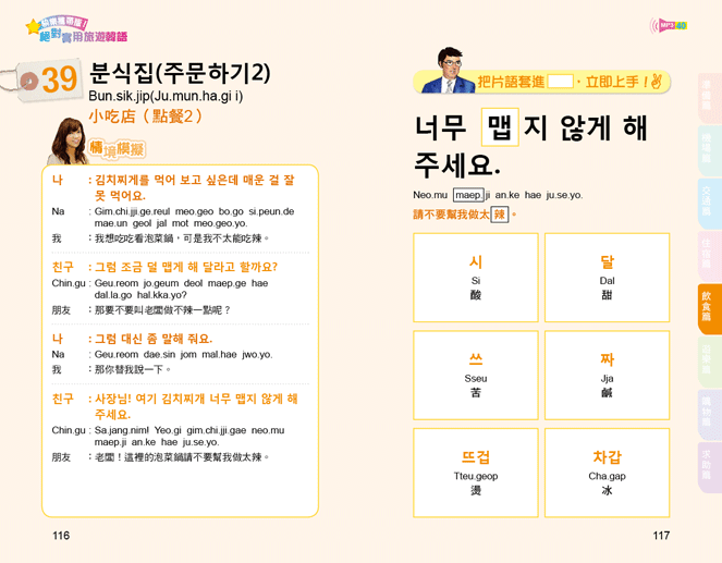 3.全書韓文皆附上羅馬拼音:緊張時,只要對照書上的拼音唸,韓國人就馬上懂您的意思!