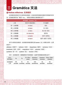 Step 3 文法:最令人頭痛的文法,本書也有辦法讓你輕鬆吸收!初學者必學的文法:「-ar」動詞、「-er」動詞、「-ir」動詞、現在直陳式、命令式、過去簡單式、過去完成式、疑問代名詞,也依照相應的主題,安排在各個章節。小份量的內容,讓吸收更加容易;與主題貼合的編排,能馬上對照使用情境。例: