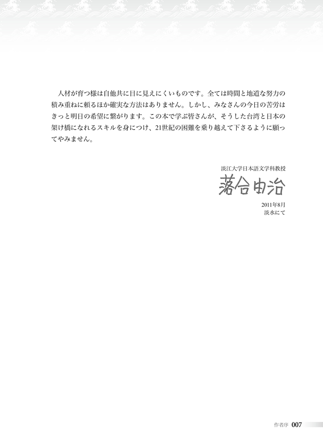 本書誕生的背後,還有由愿琦學妹領軍、訓練有素的瑞蘭國際出版團隊菁英們。這些大功臣們包括曾經是我的愛徒而今已經成為獨當一面的編輯專才的仲芸、堅持嚴格品管的日本精神絕佳代言人TOMOKO,她們都克盡職責,不厭其煩多次閱讀我所寫出的艱澀難懂的稿子,當我的最忠實讀者。同時,也不吝給予非常中肯的意見,隨時與我保持良性的溝通。有她們專業的技術、嚴格的校稿、優質品管的輔助,才會有這本書籍的問世。在此謹致上深深的謝意。