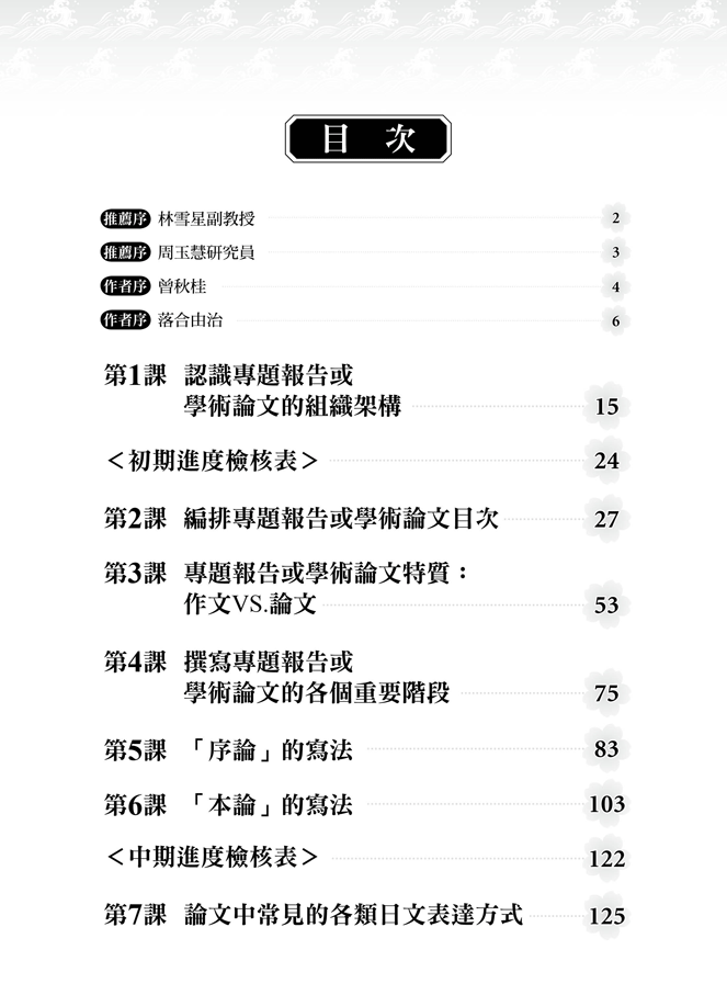 為學首重積漸之功,所謂「鍥而舍之,朽木不折;鍥而不舍,金石可鏤」,若能熟讀秋桂老師與落合老師的這兩本書,讀者們必然獲益匪淺。筆者甚至深切期待兩位老師的第三本、第四本、乃至於一整套的系列專題寫作書!