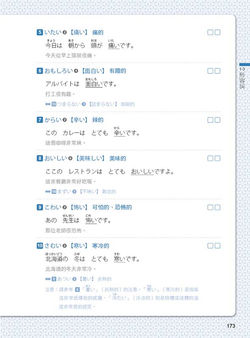 每個語彙除了讀音、中譯外,還標示重音、漢字及例句,讓您輕鬆掌握用法;形容詞更補充同義、反義字,舉一反三記憶更迅速!
