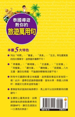 泰國是一個有趣又好玩的國度。到泰國旅遊既方便前往,又可以隨興漫遊,還有好吃的食物與有趣的風土民情,所以受到全世界人的歡迎。本書特別列舉了一些到泰國旅遊時,使用頻率最高的單字和句子,可以滿足旅遊時與泰國人的會話應對。旅遊時邊練習泰語,不僅能讓你的旅行更為順暢,也能夠貼近感受泰國人情的親切。