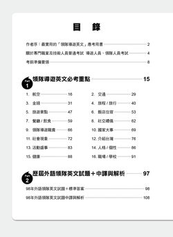 另外,在準備考試時,即便多看與旅遊相關的英文資訊會有諸多幫助,但相信大部分的考生,若是沒有一本正式的領隊導遊英文參考書籍在手,還是會心有不安。然而,目前市面上有關此類的相關書籍,只是單純地將所有單字未經消化、分類地一昧列出,考古題的解析也只是將題目翻譯出來,如此一來,對於需要快速入門、吸收內容的考生來說並沒有太多的幫助,反而太多資訊會導致統整上的混亂。有鑑於此,《領隊導遊英文一本搞定!》有別於其他參考書籍,特別在Part 1就先將最常考的重點依情境整理出來,讓沒有頭緒的考生可以迅速了解命題方向,而在Part 2和Part 3實際練習考古題後,也有非常詳盡的解析可供參考。總之,本書不只希望考生及格而已,更重要的是希望讀者能快速地了解、吸收領隊導遊英文,縮短考前衝刺的寶貴時間,一舉金榜題名,順利成為一名出色的領隊、導遊!